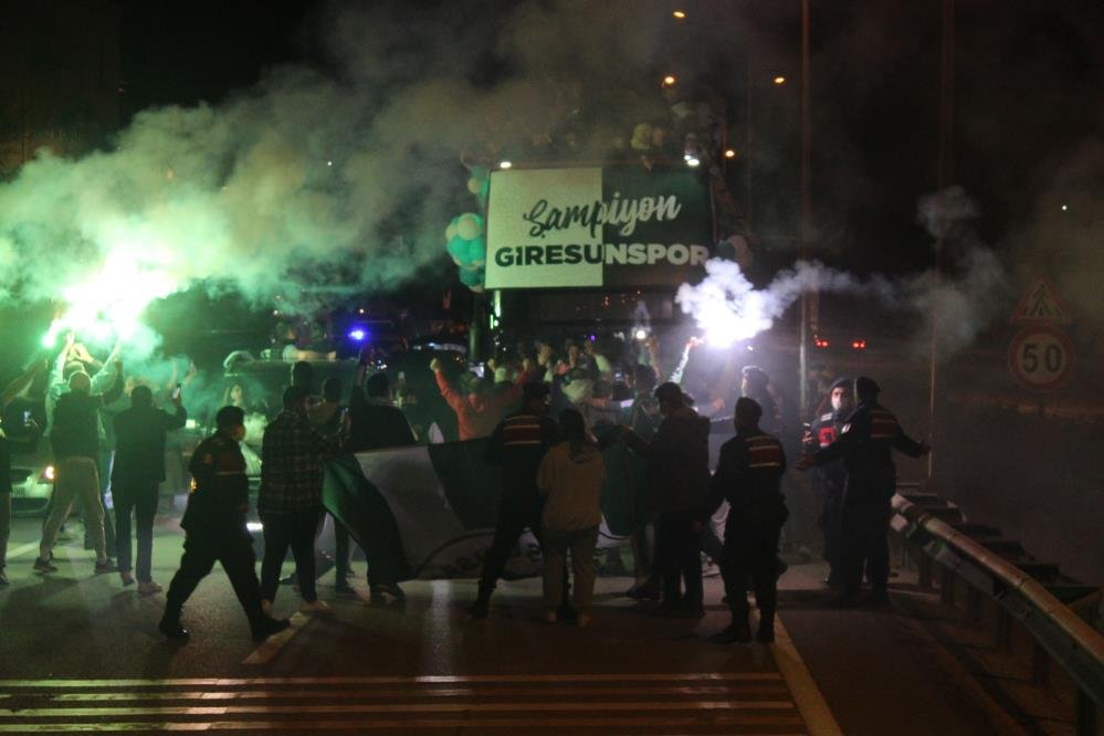 TFF 1. Lig’i 70 puanla ikinci sırada tamamlayarak Süper Lig'e yükselen Giresunspor, şehirde coşkuyla karşılandı. Yeşil-beyazlı ekip, taraftarlar eşliğinde şehir turu gerçekleştirdi. Ancak taraftarlar pandemi nedeniyle tam kapatmanın ve sosyal mesafenin önemini unuttular! Adana Demirspor’un ardından TFF 1. Lig’de ikinci olarak Süper Lig’e yükselen Giresunspor’da 44 yıl sonra gelen başarının mutluluğu ve coşkusu yaşanıyor.Ancak Adana’dan sonra Giresun’da da pandemi döneminde olmaması görüntüler, tüm ülkede yasakların olduğu dönemde ortaya çıktı.Tuzlaspor karşılaşmasının ardından akşam saatlerinde İstanbul'dan uçakla Giresun’a gelen kafile üstü açık otobüs ile şehir turu attı.