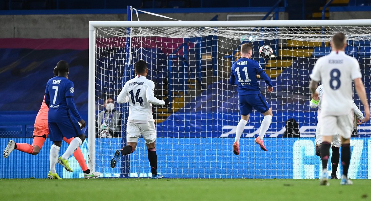Maça iyi başlayan Chelsea, 28. dakikada Werner ile öne geçti. Savunmanın arkasına sarkan Kai Havertz, kaleci Thibaut Courtois ile karşı karşıya kaldı. Courtois’nın üzerinde aşırtma bir vuruş yapan Havertz’in şutu, direkten geri geldi. Dönen topu iyi takip eden Werner, topu ağlara göndererek takımını öne geçirdi. Werner’in bu golden birkaç dakika önce kaydettiği gol ise ofsayt gerekçesiyle geçersiz sayıldı. İlk yarıda başka gol olmayınca Chelsea, soyunma odasına 1-0 önde girdi.