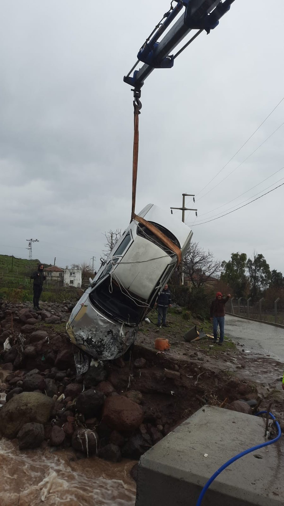 Ödemiş'te pek çok evi su basarken, Sel suları Aliağa'da ise yürekleri ağıza getirdi. Aliağa ilçesi Yukarı Şehit Kemal Mahallesi’nde park halinde olan bir araç sel sularına kapıldı.