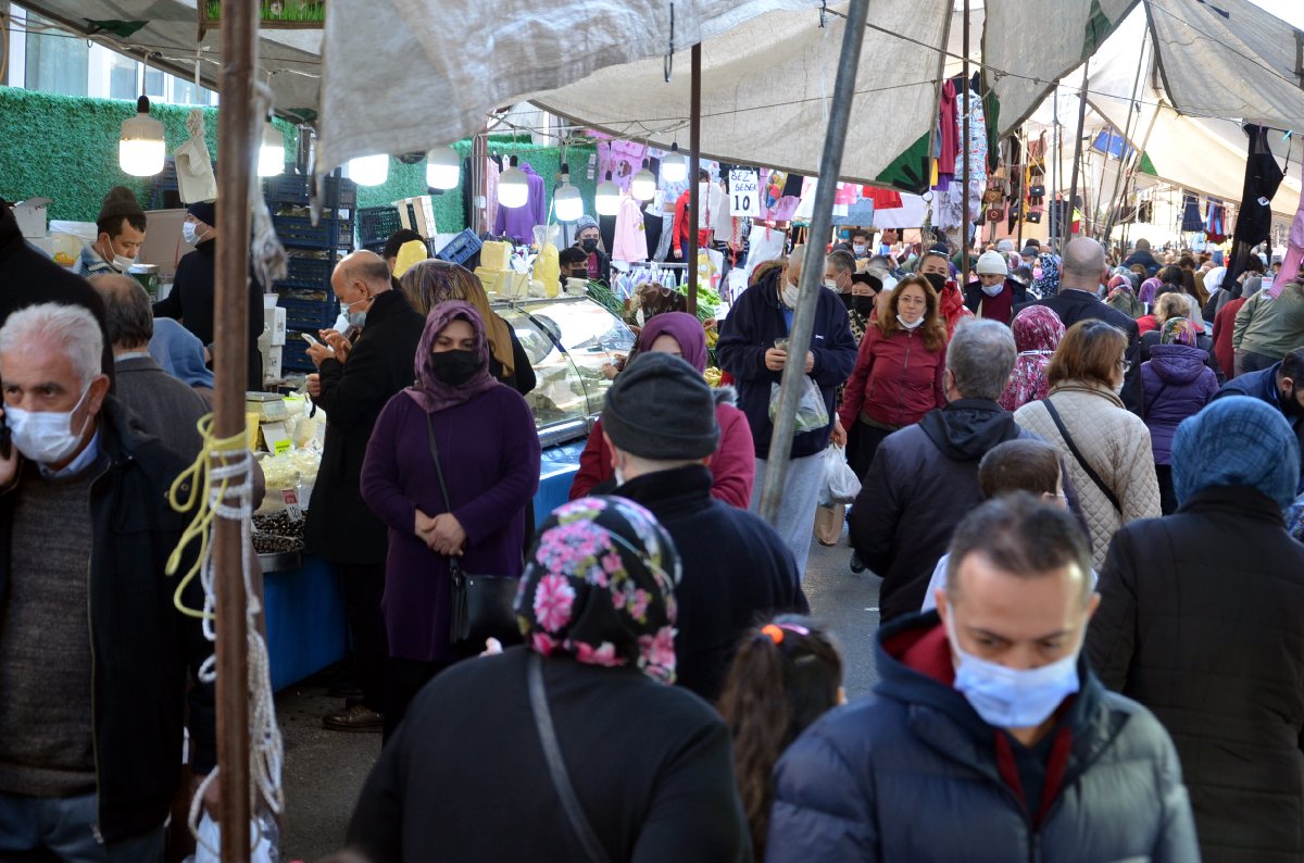 Ahmet Taner Kışlalı Caddesi'nin bir bölümü ile ara sokaklarda her hafta kurulan Çarşamba pazarında öğle saatlerinde başlayan yoğunluk akşam saatlerine kadar eksilmedi.Baharı andıran havanın da etkisiyle pazara akın edenler, bazı kesimlerde ilerlemekte zorlanırken, maske kuralına uyuldu ancak sosyal mesafe kuralı hiçe sayıldı.