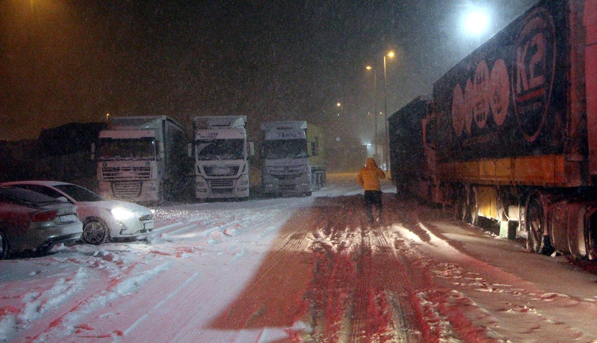 Bursa-İzmir otobanı kar yağışı sebebiyle trafiğe kapandı