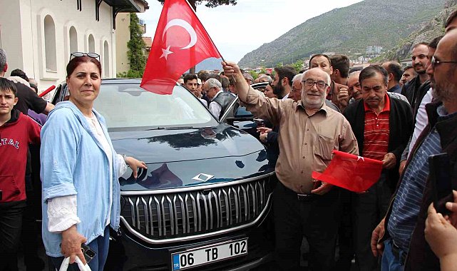 Türkiye'nin yerli otomobili Togg, Amasya'da görücüye çıkarak kullanıcıları ve vatandaşlarla buluştu. Çok sayıda vatandaş aracın önünde cep telefonuyla selfie yaptı.Saraydüzü Kışlası önünde sergilenen Togg'a (Türkiye'nin Otomobili Girişim Grubu) vatandaşlar yoğun ilgi gösterdi. Elektrikli aracı yakından gören vatandaşlar bolca fotoğraf çektirerek hakkında bilgi aldı.Aracın direksiyona geçen AK Parti Amasya İl Başkanı Ekrem Toto, "Türk milleti Allah'ın izniyle bu aracı yapmayı başardı. Bundan sonra da nesil de çok daha büyük şeyler başaracaktır" dedi.Aracın direksiyonunun başında duygulanan 92 yaşındaki İbrahim Öztürk, çok mutlu olduğunu belirterek Cumhurbaşkanı Recep Tayyip Erdoğan'a selam gönderdi. Altı Nokta Körler Derneği Amasya Şubesi Başkanı Musa Demiryarar, "Gözlerimi kaybetmeden önce yıllarca araç sürmüştüm. Arabaya biner binmez içindeki rahatlığı, konforu hissettim" diye konuştu. Bedriye Bar da, "Araç çok güzel, bayıldım. Yapanlardan Allah razı olsun" şeklinde konuştu.Togg talihlilerinden Fikri Gevrek ve Uğur Mutlu ise daha heybetli buldukları araca bir an evvel kavuşmak istediklerini söylediler.