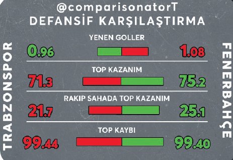 Trabzonspor-Fenerbahçe maçına scout gözüyle derin analiz. Abdullah Avcı kanatlarındaki tandemi presle daraltıp hızlı hücum yapmaya yönelirse ibreyi takımına çevirir. Erol Bulut, pas trafiğini yarı sahaya yıkıp kanatlardan orta-gol stratejisi uygularsa kazanabilir. Türkiye’nin sonucunu merakla beklediği Trabzon-Fenerbahçe mücadelesini Comparisonator platformu Scouting Uzmanı Tarkan Batgün masaya yatırdı. İşte Batgün'ün değerlendirmeleri…İki takım ofansif ve defansif olarak farklı kimlikte. Maç başına Trabzonspor, 1.28 gol atmış, 0.96 gol yemiş. Fenerbahçe ise 1.88 atarken kalesinde 1.08 gol görmüş. Tüm maçlara bakıldığında Trabzonspor 150 gol pozisyonu bulup 41 gol üretmiş (Yüzde 27 başarı), kalesinde ise 124 gol pozisyonu vererek 32 gol yemiş. Fenerbahçe ise 206 gol pozisyonu bulup 58 gol üretmiş (Yüzde 28 başarı), 127 gol pozisyonunu da kendi kalesinde vererek 32 gol yemiş. Aslında başarı oranları birbirlerine çok çok yakın ve beraberlik kokan bir maça işaret ediyor.