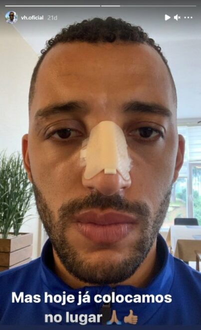 Fenerbahçe maçında burnu kırılan Trabzonspor'un Brezilyalı savunmacısı Vitor Hugo sosyal medyada hesabından görüntü paylaştı. Süper Lig’in 27’inci haftasında Fenerbahçe’ye 1-0 mağlup olan Trabzonspor’da Brezilyalı savunmacı Vitor Hugo’nun burun kemiğinde kırık meydana geldiği açıklandı.Trabzonspor Kulübü, Brezilyalı savunma oyuncu Vitor Hugo ve Kamil Ahmet Çörekçi’nin sağlık durumuyla ilgili açıklamada bulundu.İlginizi Çekebilir