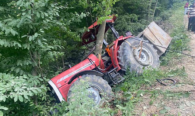 Sakarya'nın Hendek ilçesinde sürücüsünün kontrolünden çıkan traktör şarampole yuvarlandı. Kazada 7 yaşındaki çocuk ve babası yaralandı.Kaza, Hendek ilçesi Karadere Mahallesi'nde meydana geldi. Edinilen bilgiye göre, orman yolu üzerinden tarlasına gitmekte olan H.K. (44) idaresindeki 54 KK 284 plakalı traktör, sürücüsünün kontrolünden çıktı. Kontrolden çıkan traktör, şarampole yuvarlandı. Kazada traktör ile ağaç arasına sıkışan baba Y.K. ile 7 yaşındaki oğlu Y.K. yaralandı. Bölgeye sevk edilen sağlık ekiplerince yaralılar Hendek Devlet Hastanesi'ne kaldırıldı.Kaza ile ilgili inceleme başlatıldı.