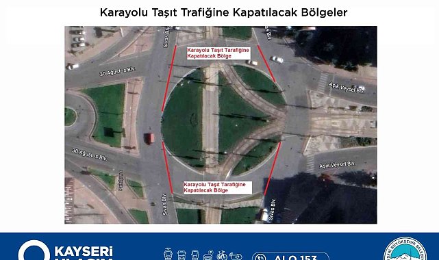 Kayseri Büyükşehir Belediyesi Ulaşım A.Ş. Aşık Veysel Bulvarı ile 30 Ağustos Bulvarı'nın Sivas Bulvarı üzerinde kesiştiği dönel kavşak bölgesinde, raylı sistem hattında zorunlu bakım çalışmaları yapılacağını duyurdu.Kent merkezi ve kırsalda yerel yönetim hizmetlerini etkin ve kaliteli bir şekilde vatandaşlara ulaştırmaya özen gösteren Kayseri Büyükşehir Belediyesi, ulaşım alanında da konforlu ve güvenli hizmet vermek için çalışmalarını sürdürüyor. Bu çerçevede Büyükşehir Belediyesi Ulaşım A.Ş. vatandaşlar tarafından yoğun şekilde tercih edilen ulaşım araçlardan raylı sistem hatlarında dönem dönem bakım onarım çalışmaları gerçekleştiriyor. Ulaşım A.Ş. Aşık Veysel Bulvarı ile 30 Ağustos Bulvarı'nın Sivas Bulvarı üzerinde kesiştiği dönel kavşak (İpek Saray) bölgesinde, raylı sistem hattında zorunlu bakım onarım çalışmaları yapılacağını duyurdu. Ulaşım A.Ş.'nin yürüteceği çalışmalar nedeniyle 27 Temmuz 2022-5 Ağustos 2022 tarihleri arasında Raylı Sistem T1 hattı(Organize Sanayi-İldem 5) seferleri, araç değişimleri yapılarak gerçekleştirilecek. Ulaşım A.Ş. ekiplerince, Hunat Hatun ve Fuzuli istasyonlarında yapılacak araç değişimleri esnasında istasyonlarda oluşabilecek yoğunluktan yolcuların en az şekilde etkilenmesi için gerekli tedbirler alındı. Ayrıca yolcular tarafından istasyonlarda yapılacak bilgilendirme ve yönlendirmelere uyulması önem arz ediyor.Öte yandan zorunlu bakım çalışmaları nedeniyle kavşak bölgesinde karayolu trafiği kısmi olarak hizmet verecek.
